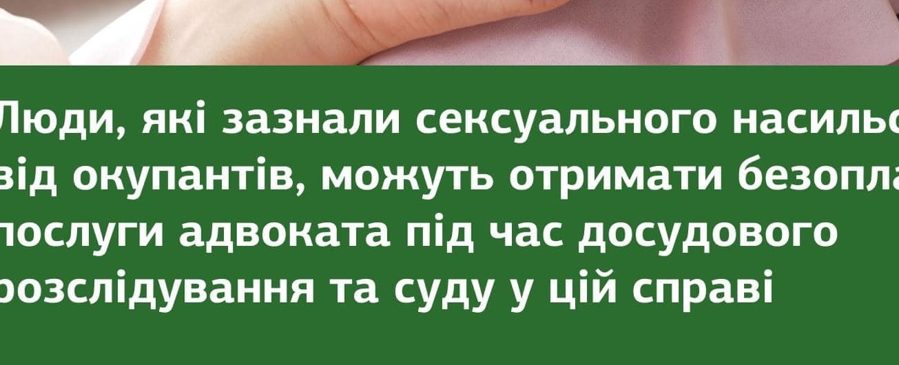 Люди, які зазнали сексуального насильства від окупантів, можуть отримати безоплатно послуги адвоката під час досудового розслідування та суду у цій справі. Для цього потрібно повідомити про злочин до поліції, а потім звернутися до системи безоплатної правової допомоги (БПД) для призначення адвоката, послуги якого будуть безоплатними.
