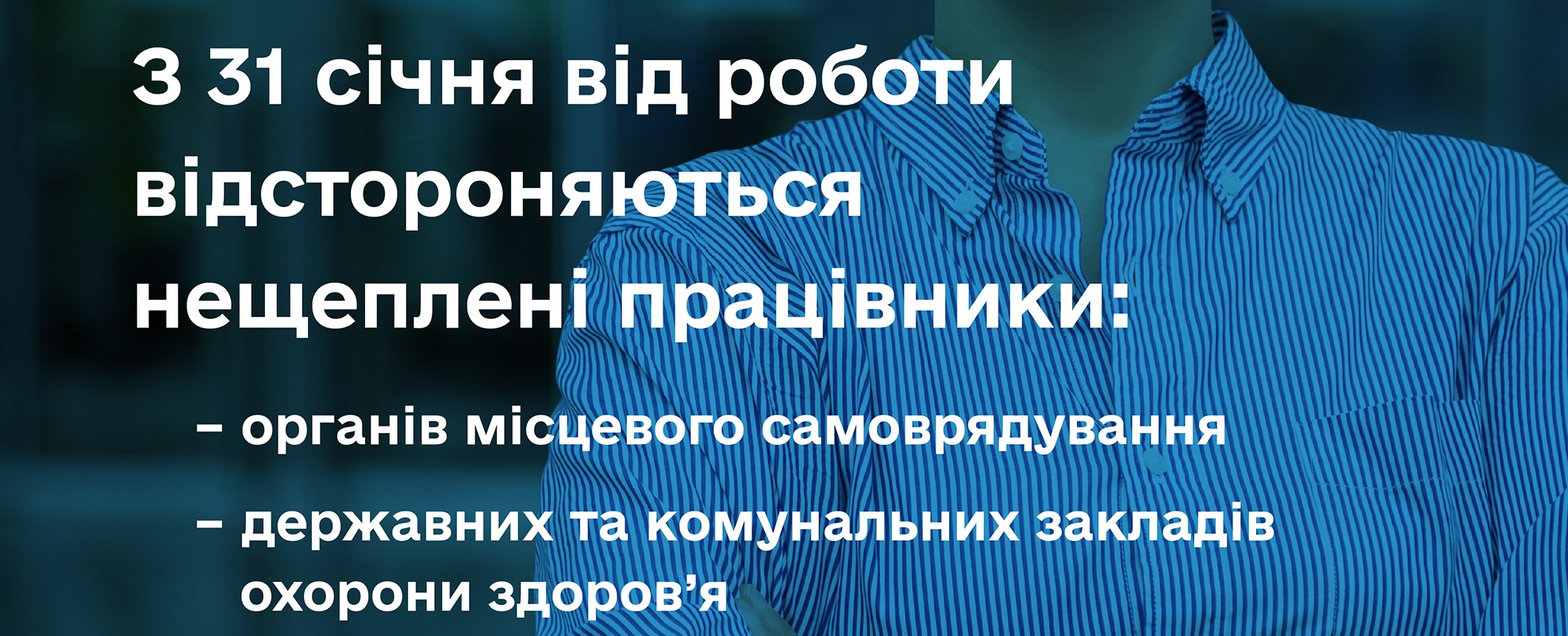 31 січня, набирає чинності наказ про відсторонення від роботи нових категорій працівників, які не зробили обов’язкове для них щеплення від COVID-19